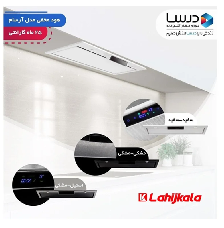 هودهای مخفی درسا انتخابی مناسب برای افرادی است که به آشپزخانههای مدرن با لوازم توکار علاقهمند هستند. طراحی این محصولات بهگونهای است که پس از نصب آنها تنها صفحه تخت زیرین هود قابل رویت است و محفظه هود داخل کابینت قرار میگیرد. هود آرسام دارای موتور توربو 4 دور با قدرت مکش بالا و صدای کم است . جهت تنظیم سرعت دور موتور می توانید از کلیدهای دیجیتال لمسی روی محصول استفاده کنید. این محصول دارای 2 عدد لامپ LED جهت روشن کردن سطح اجاق گاز در هنگام طبخ غذا می باشد. فیلتر هود آرسام نوع آلومینیومی با قابلیت شستشو است.