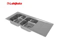 مدل DB 197 از سری محصولات داتیس است که با طراحی بسیار زیبا و شیک از صفحه ضد زنگ استیل (استنلس استیل) و با ضخامت ۰.۸ میلیمتر می باشد که دارای استحکام و از مقاومت بالایی برخوردار است. این سینک دارای استاندارد CE اروپا، آبریز بر روی سینی، 2 نوع لگن چپ و راست و دارای طرح خط دار است.